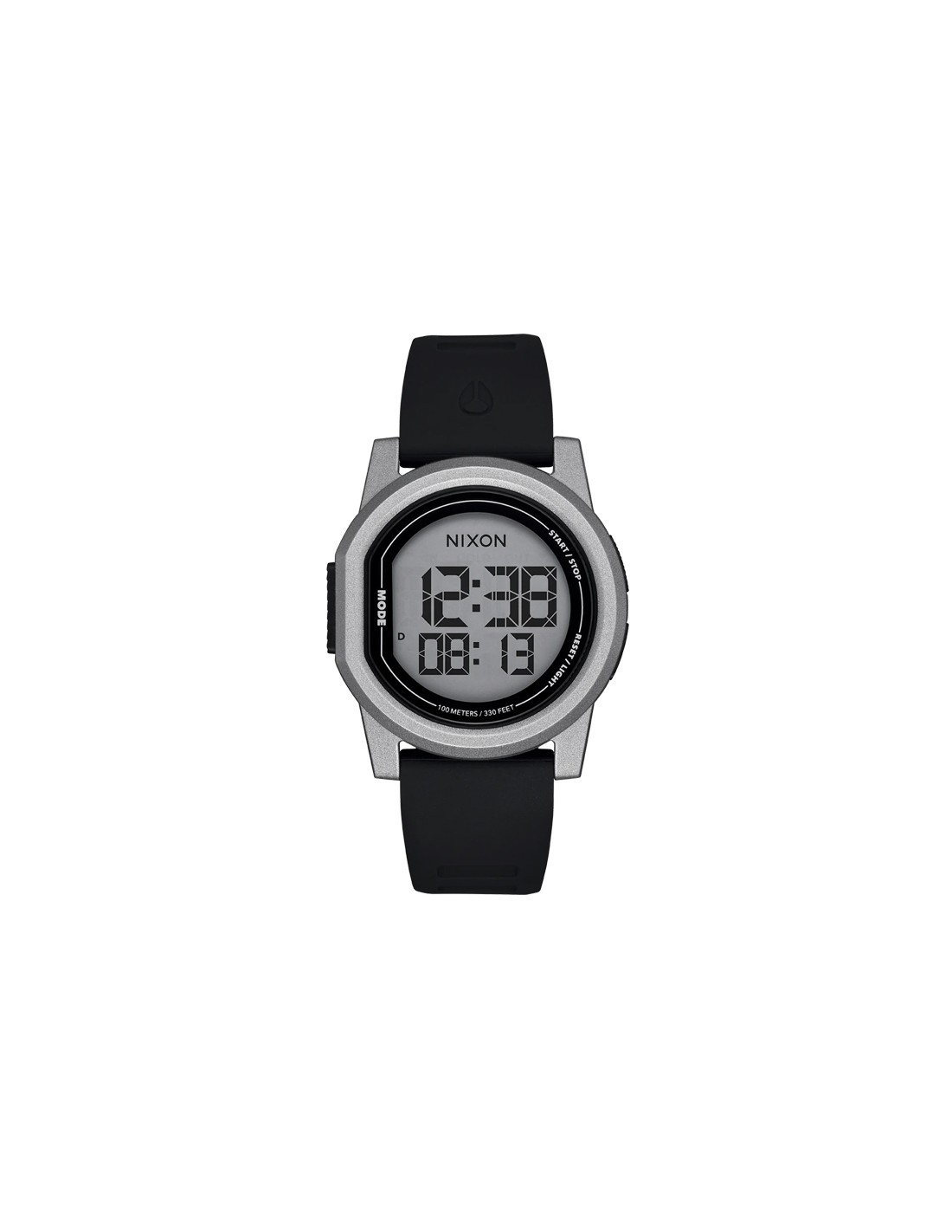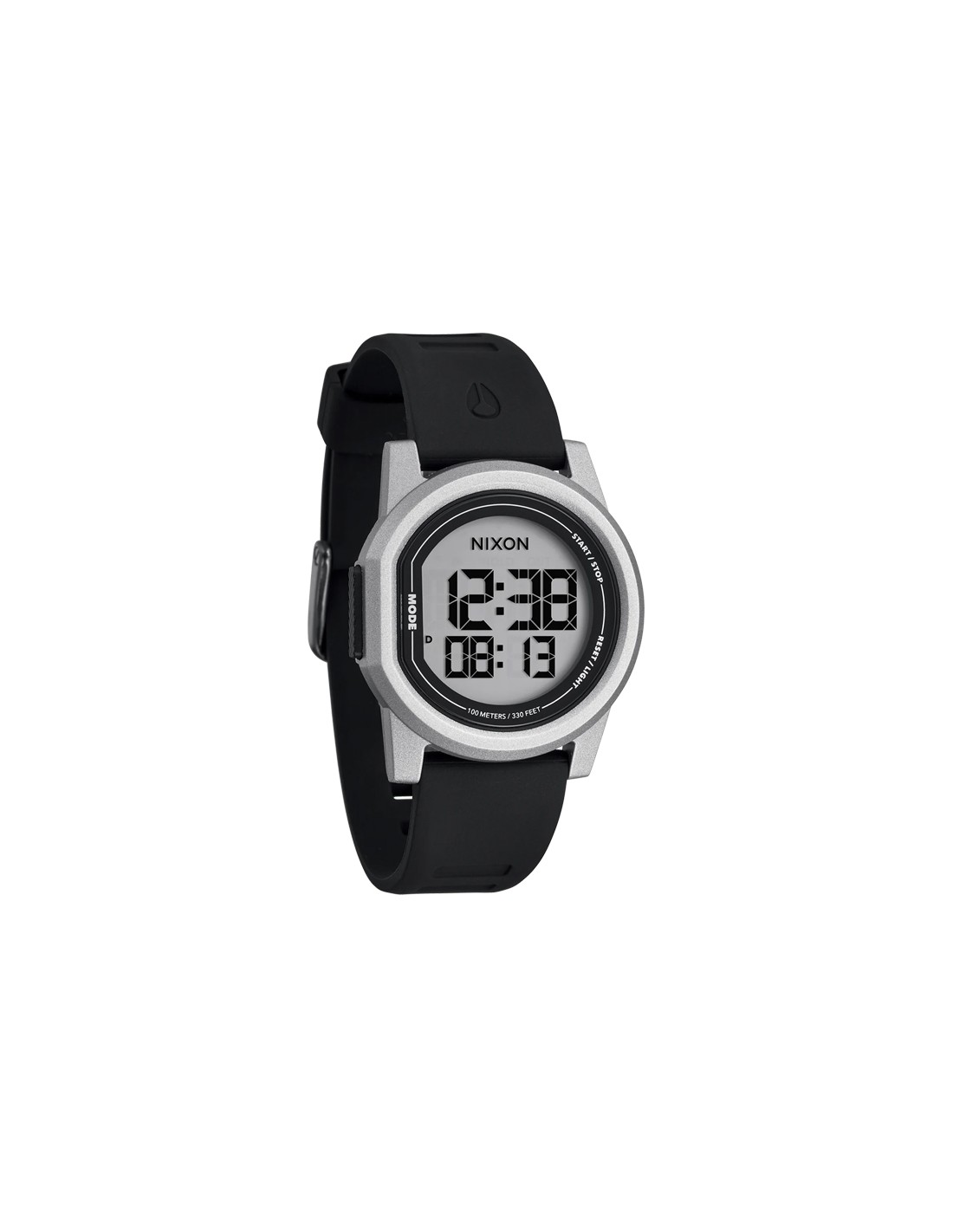 Custom digital LCD module encapsulated in a recycled plastic housing. Functions include time display (12 hour or 24 hour format), date with automatic calendar up to 2099, chronograph with 1/100 second resolution, countdown timer and alarm.< br />