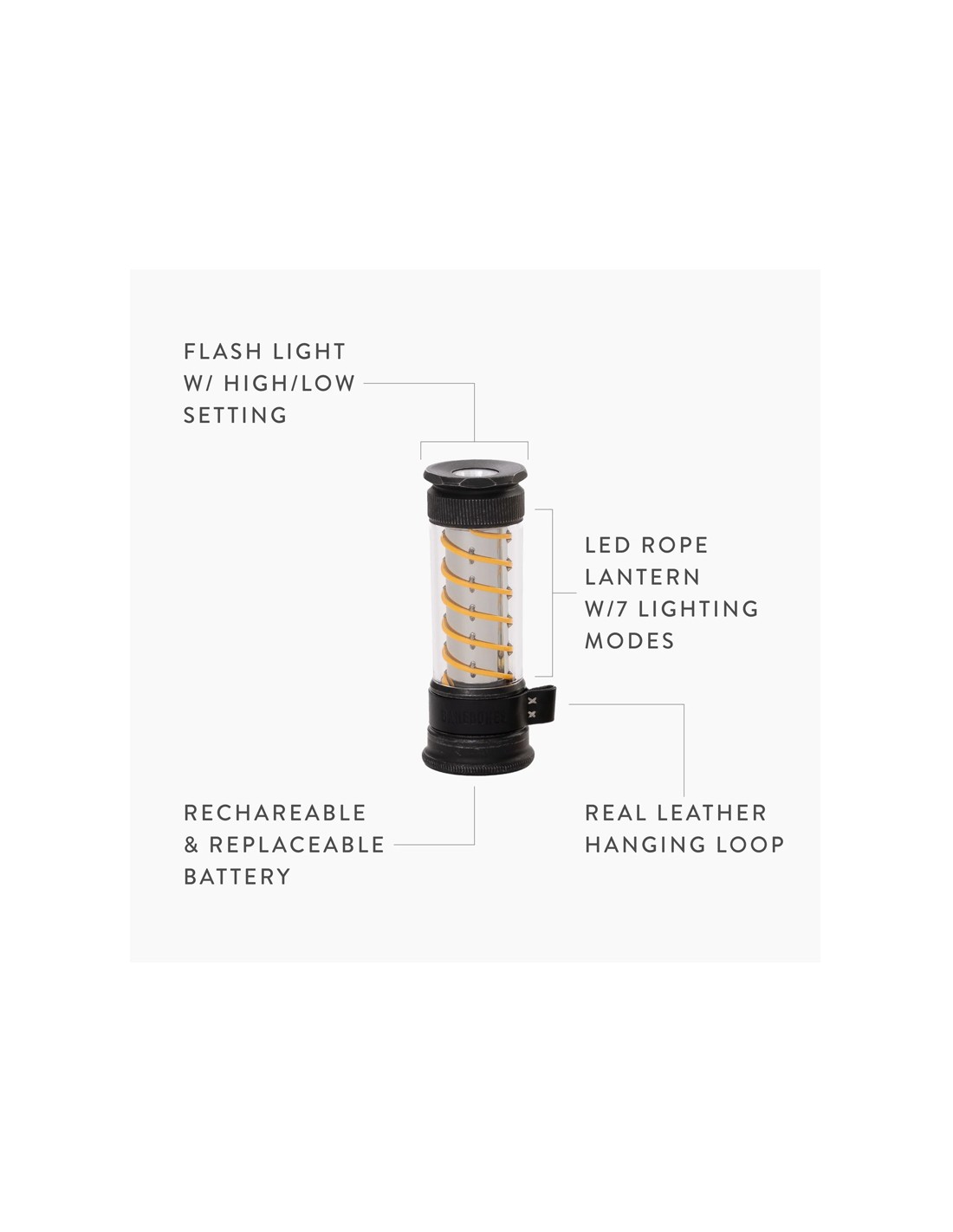 The Flexible Rope Lantern LED is a warmer, softer light ideal for reading or playing cards, while the Flashlight is a cooler LED ideal for food preparation or as a direct light source. Light Stick offers seven different light modes to create the perfect lighting or ambiance.