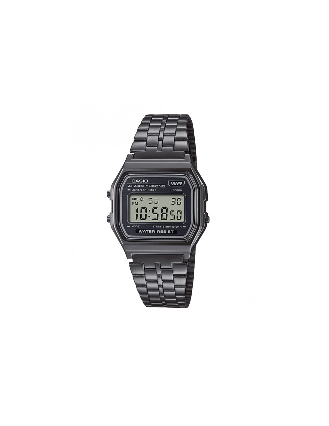 Cette montre Casio Vintage Illuminator chronometre 38mm se compose d'un boitier en résine acier, d'un cadran noir et d'un bracelet en acier.