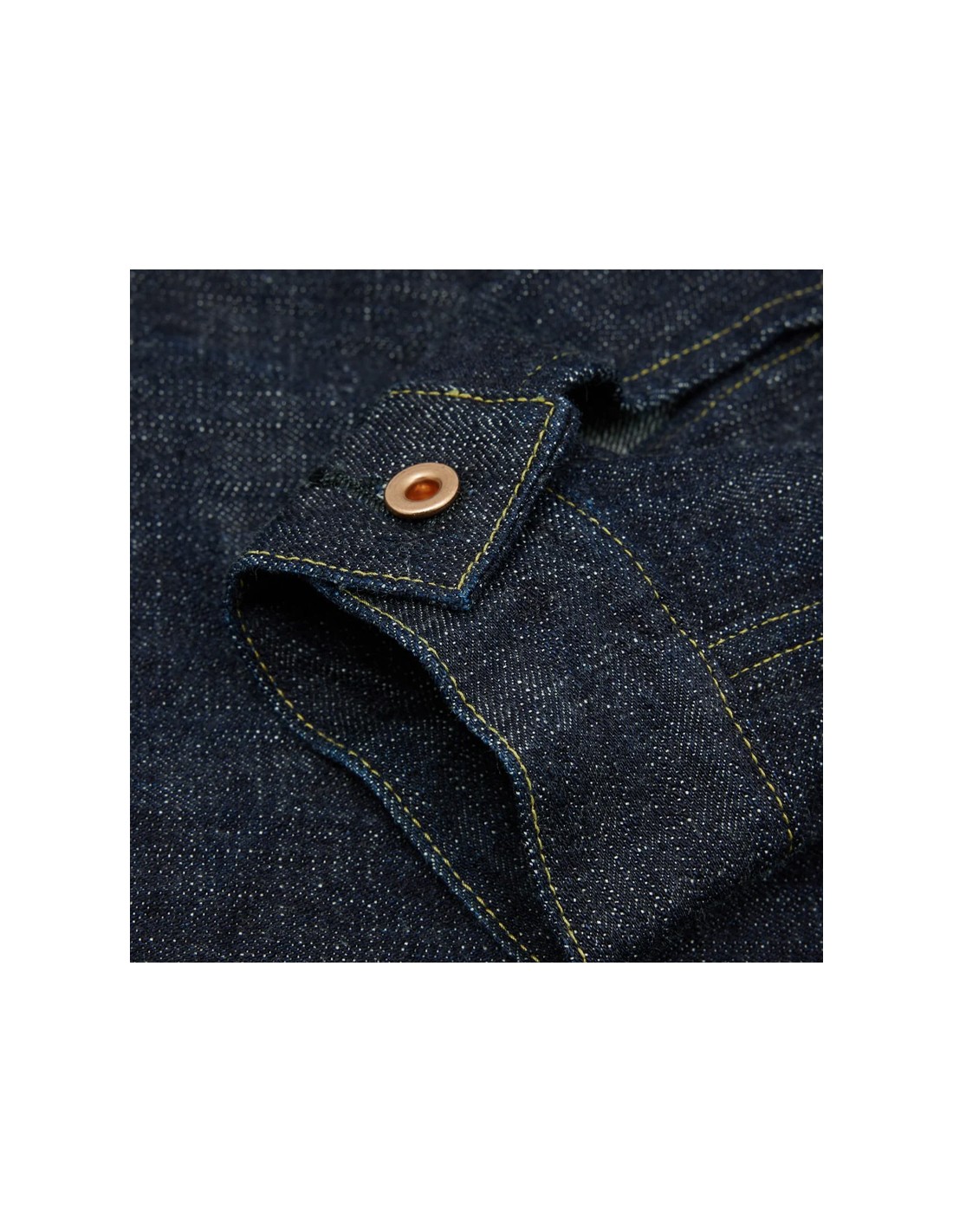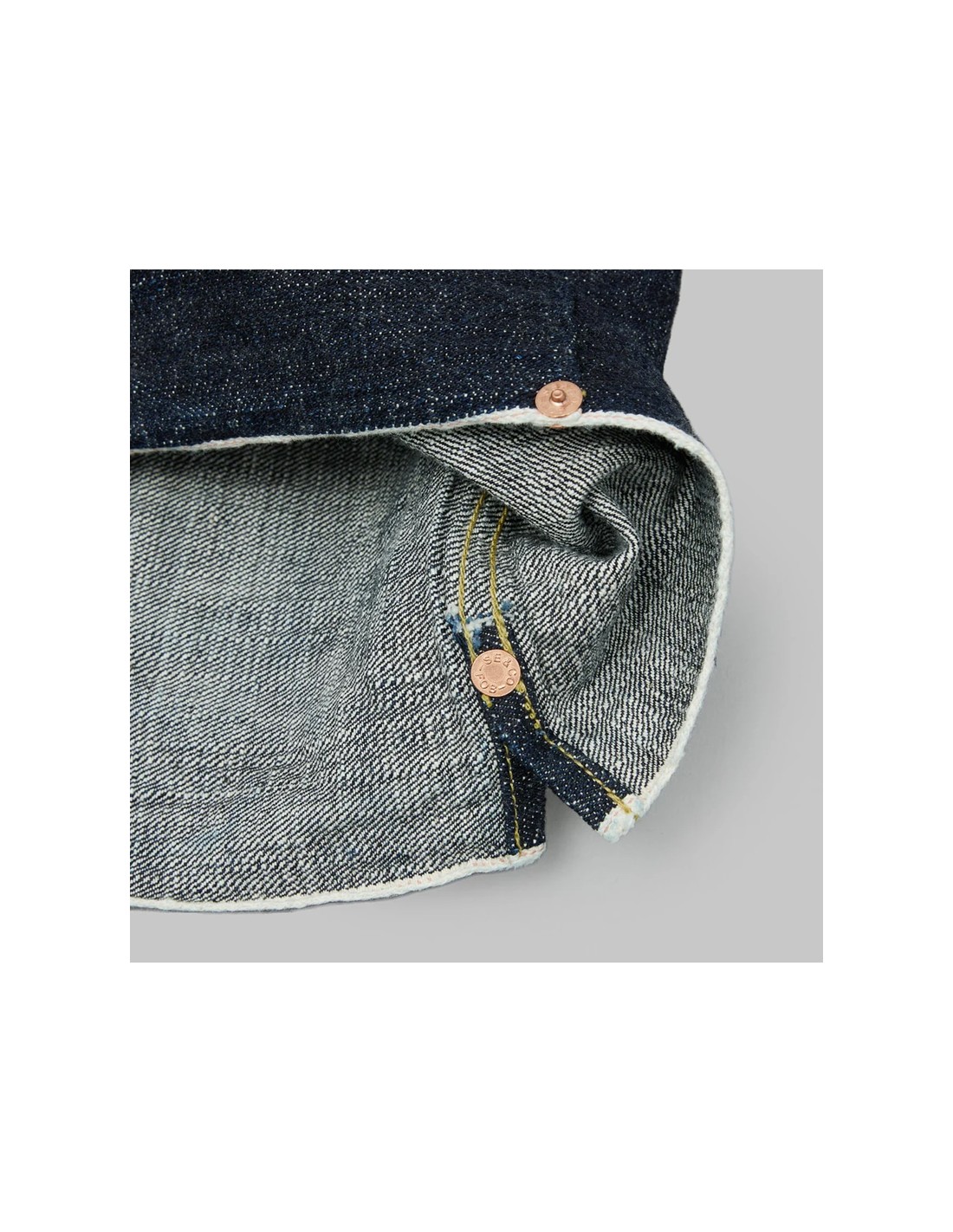 400g unsanforized indigo rope-dyed Japanese selvedge denim. One-wash version, no shrinkage expected.