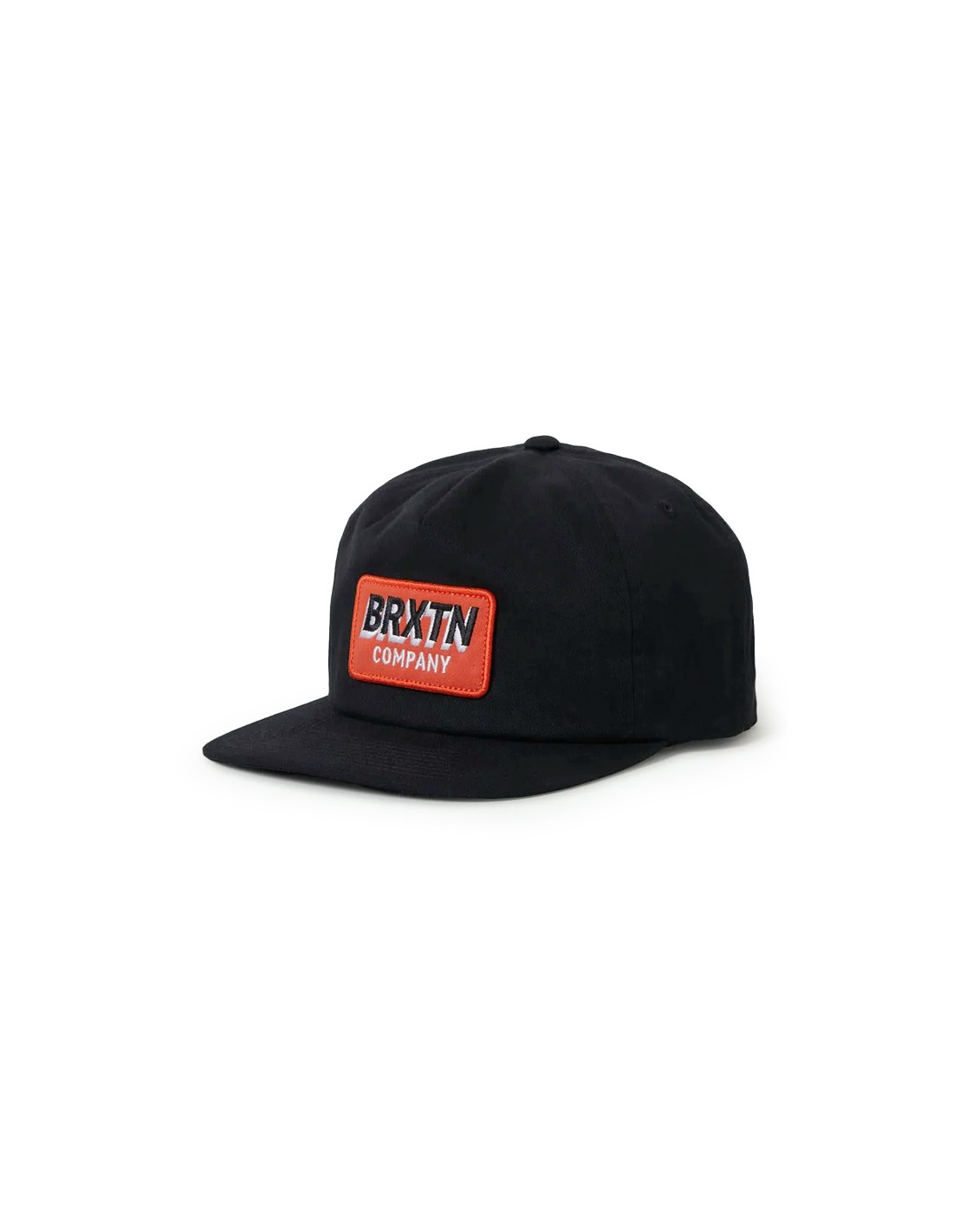 This unstructured, mid-profile 5-panel snapback offers a comfortable, relaxed fit, complemented by a flat brim for a modern look. The adjustable rear closure lets you find the perfect fit, and the sweatband keeps you cool and dry during your active days. With its crisp black design and bright red embroidered Brixton crest with ribbed edges, this snapback cap perfectly combines classic simplicity with a distinctive design.