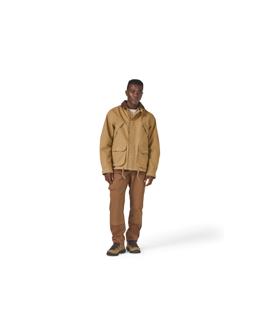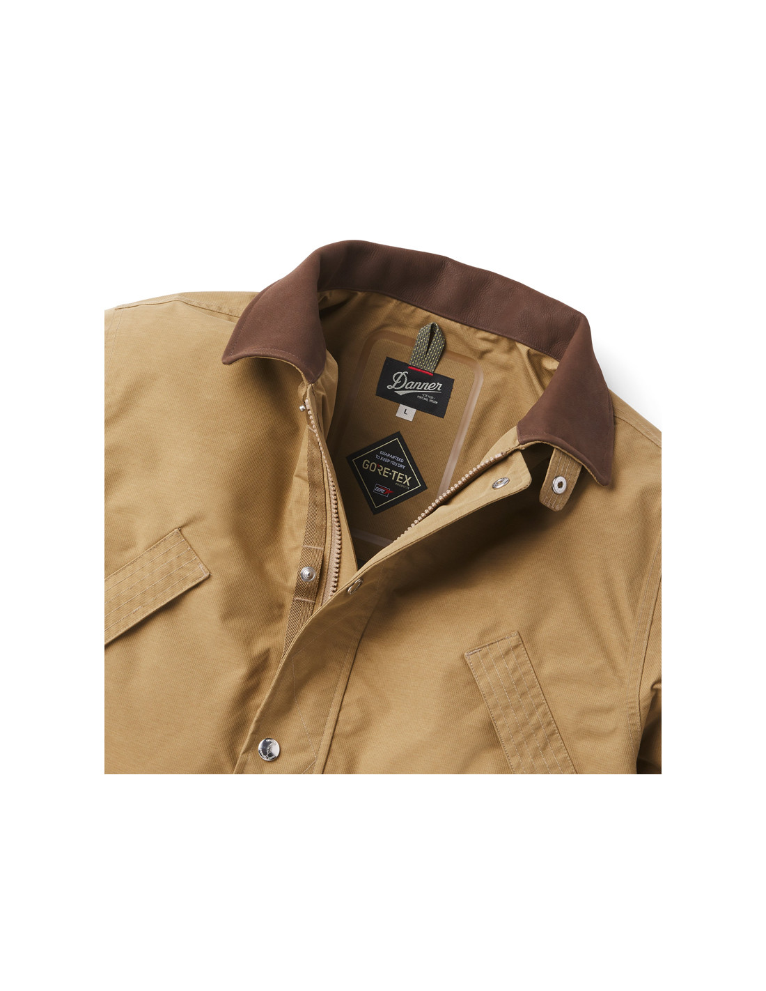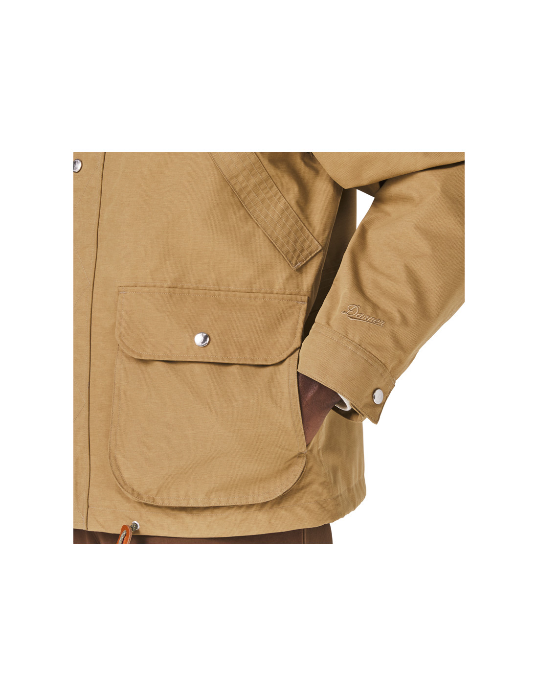 The Woodsman Jacket is inspired by the classic and beloved hunting jackets of yesteryear, with its contrasting genuine leather collar, removable and stowable hood, zigzag stitching, and large zippered back pockets. But don't let its rugged, rugged look fool you. This isn't just a replica of what hunters wore in the past. It's a fully waterproof GORE-TEX jacket, completely redesigned and modernized, designed to protect you from the rain and last as long as you need it. 2-layer recycled GORE-TEX fabric with ePE membrane Genuine Danner leather collar Recycled polyester lining Removable and stowable hood Metal buckles and zip on the front Zipped inner and back pockets Pleated elbow joints for greater freedom of movement Snap buttons Danner leather fingers 57g sample of leather care product for the collar