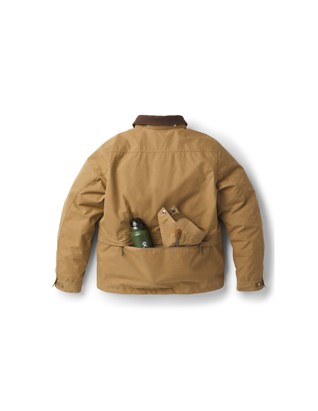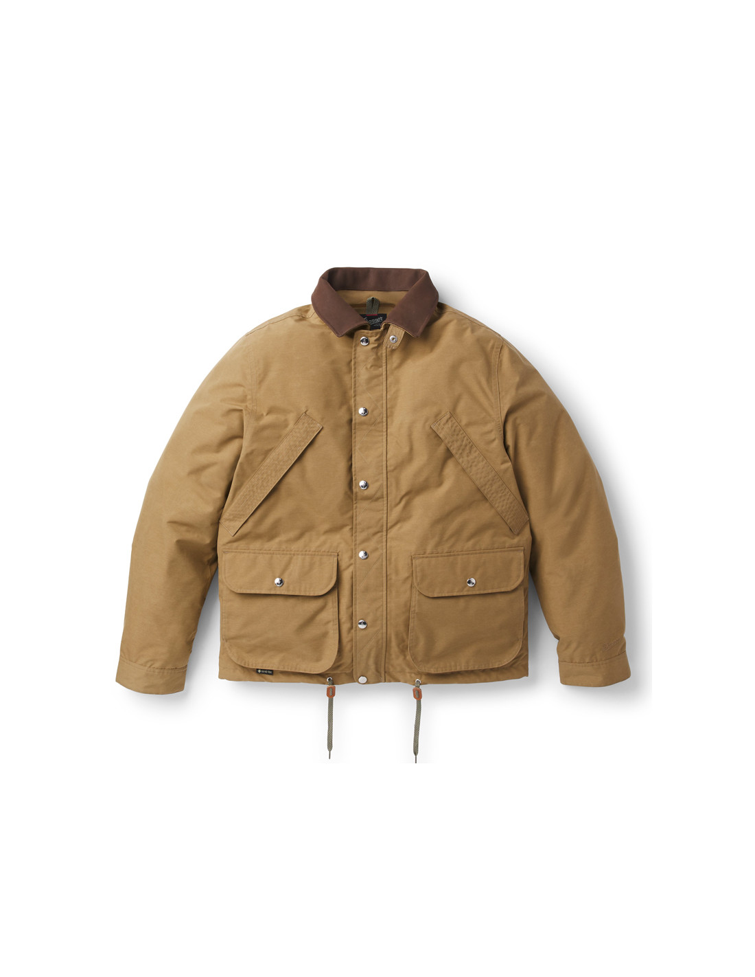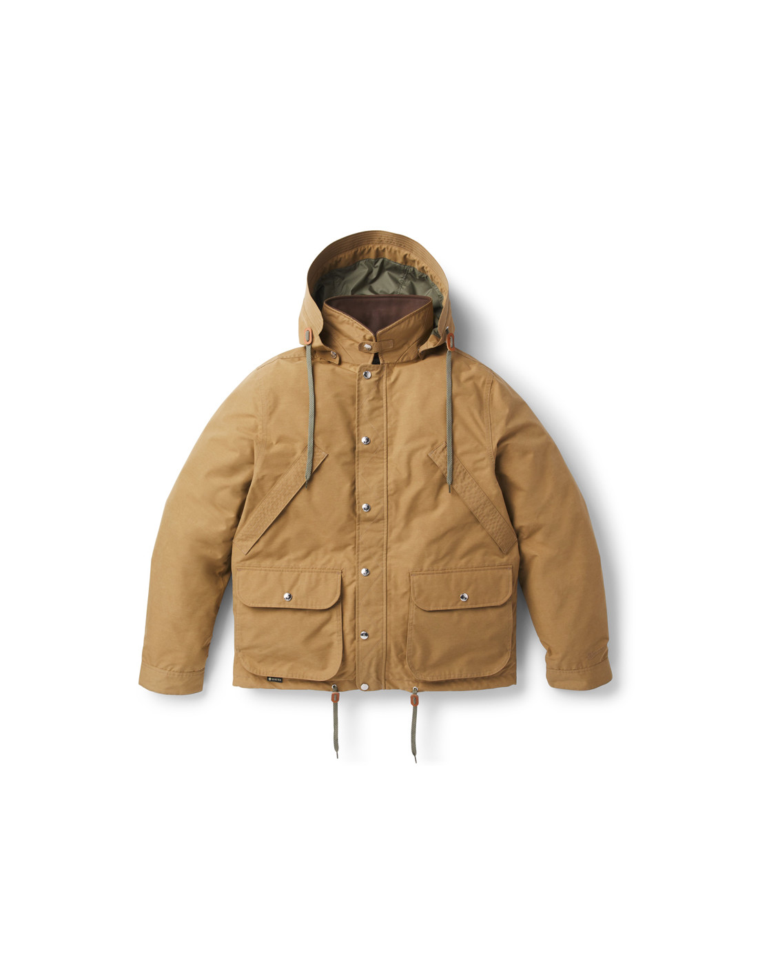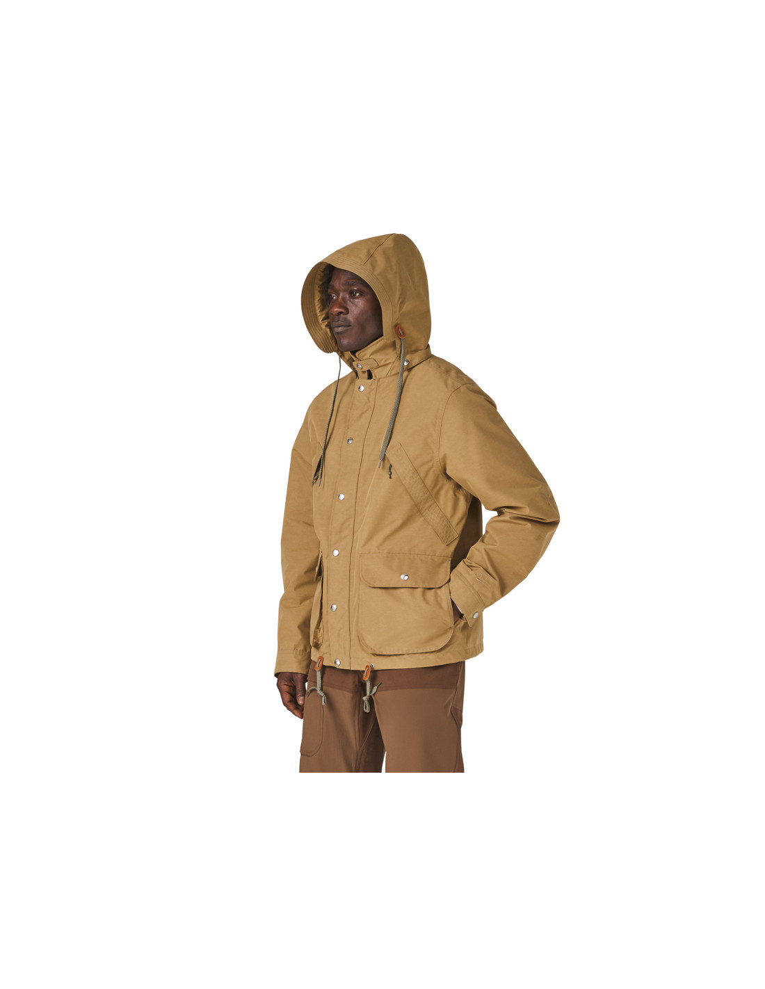 The Woodsman Jacket is inspired by the classic and beloved hunting jackets of yesteryear, with its contrasting genuine leather collar, removable and stowable hood, zigzag stitching, and large zippered back pockets. But don't let its rugged, rugged look fool you. This isn't just a replica of what hunters wore in the past. It's a fully waterproof GORE-TEX jacket, completely redesigned and modernized, designed to protect you from the rain and last as long as you need it. 2-layer recycled GORE-TEX fabric with ePE membrane Genuine Danner leather collar Recycled polyester lining Removable and stowable hood Metal buckles and zip on the front Zipped inner and back pockets Pleated elbow joints for greater freedom of movement Snap buttons Danner leather fingers 57g sample of leather care product for the collar