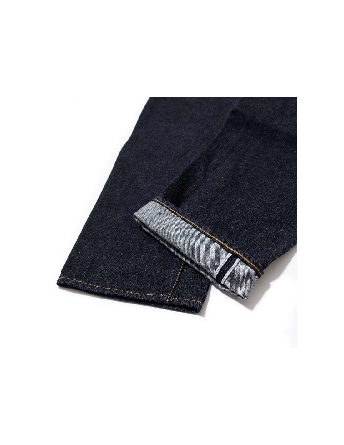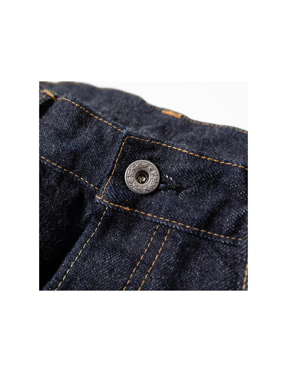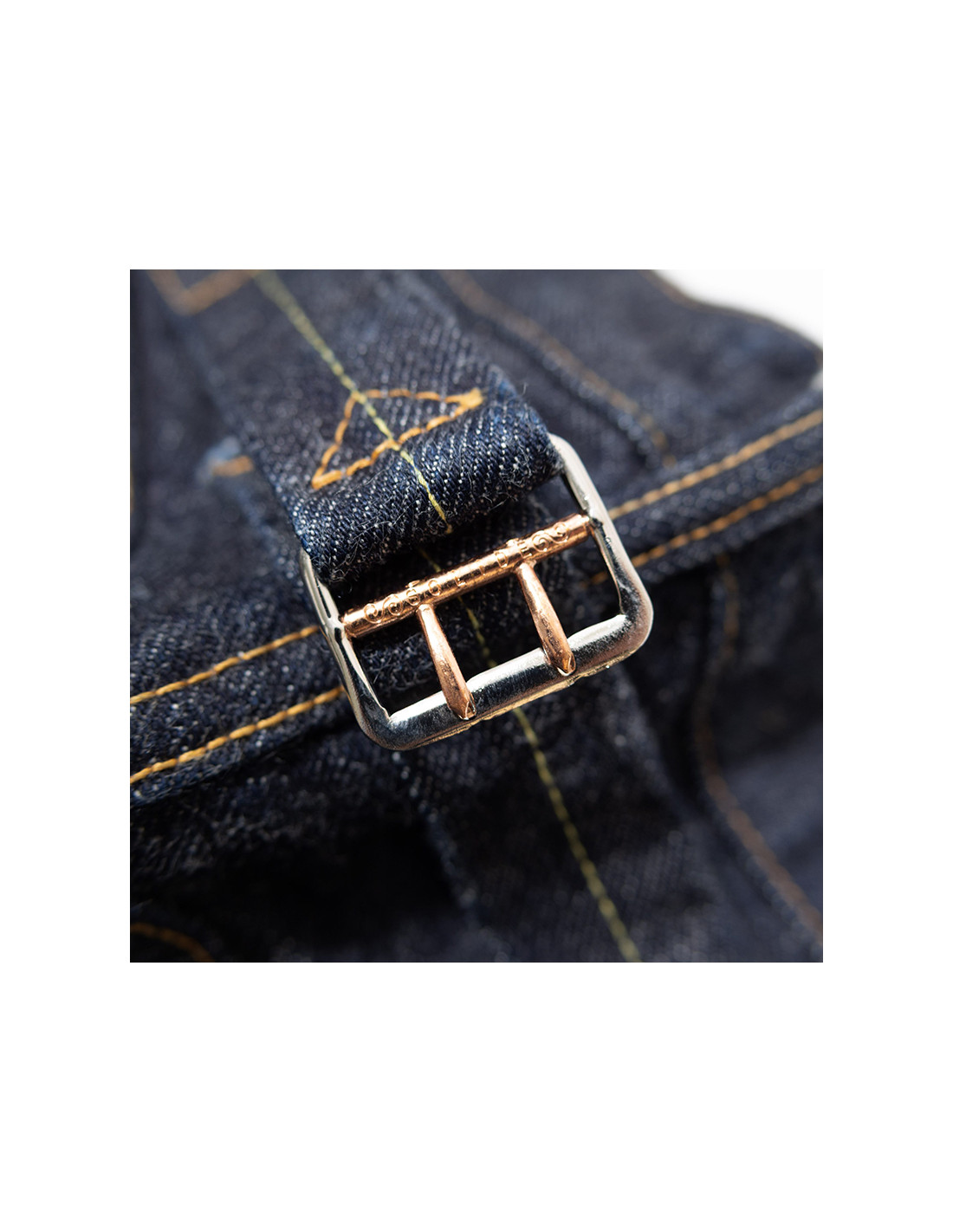 The 5P Work Selvedge Denim with a back buckle is crafted from 14.75 oz. original denim, using premium Pima cotton as the raw cotton.