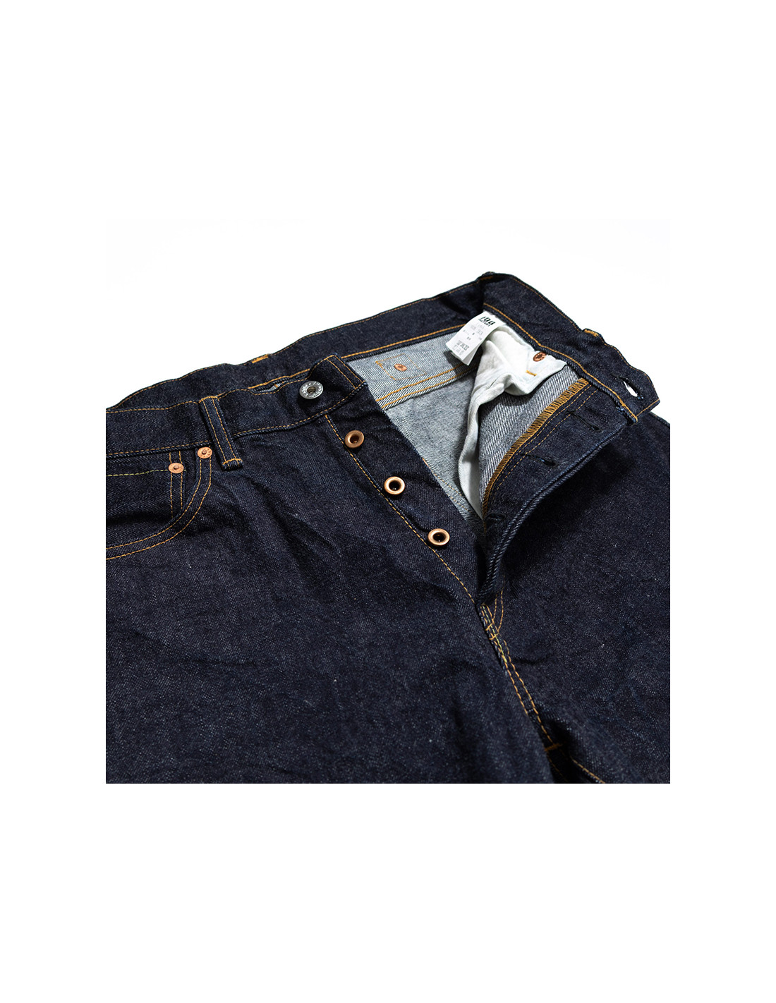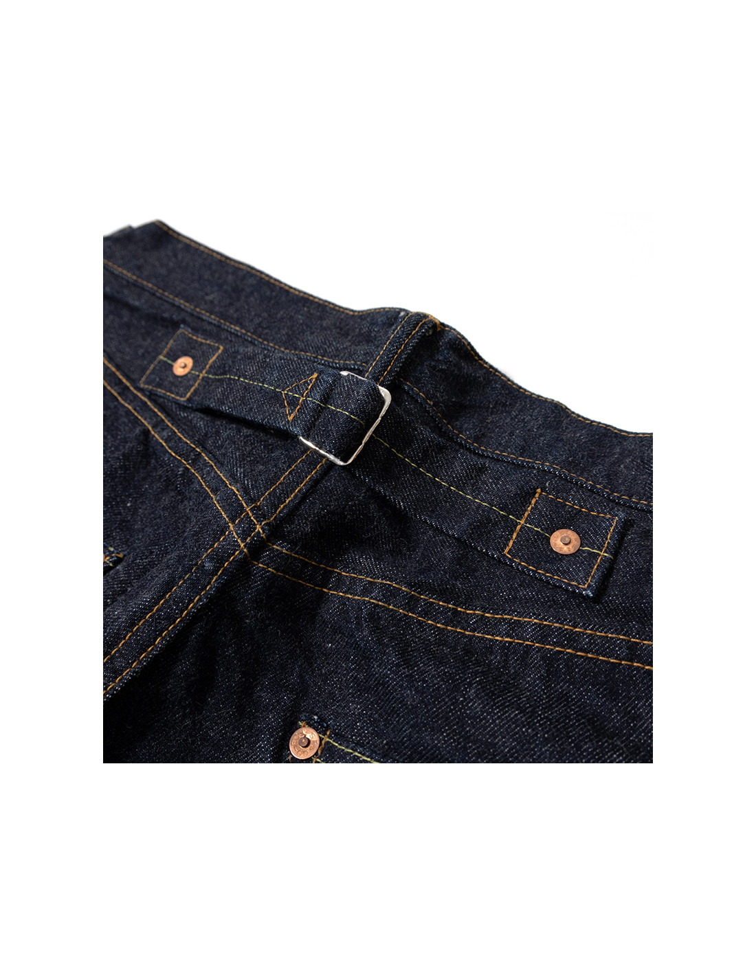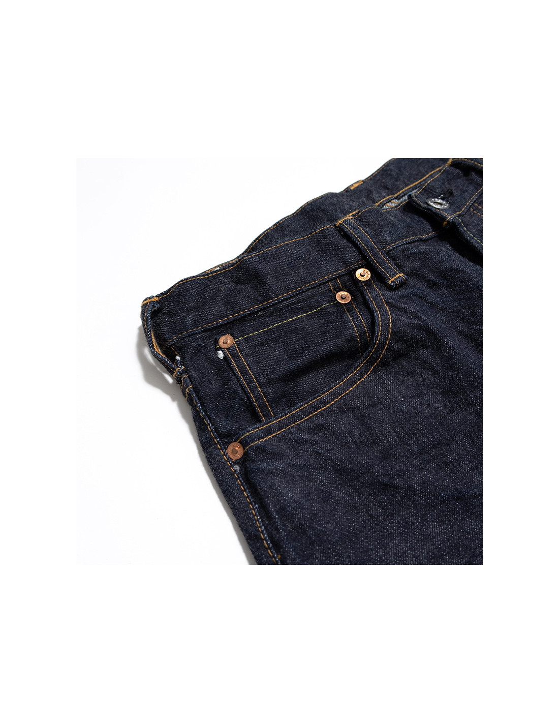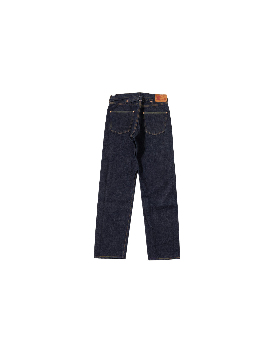 The 5P Work Selvedge Denim with a back buckle is crafted from 14.75 oz. original denim, using premium Pima cotton as the raw cotton.