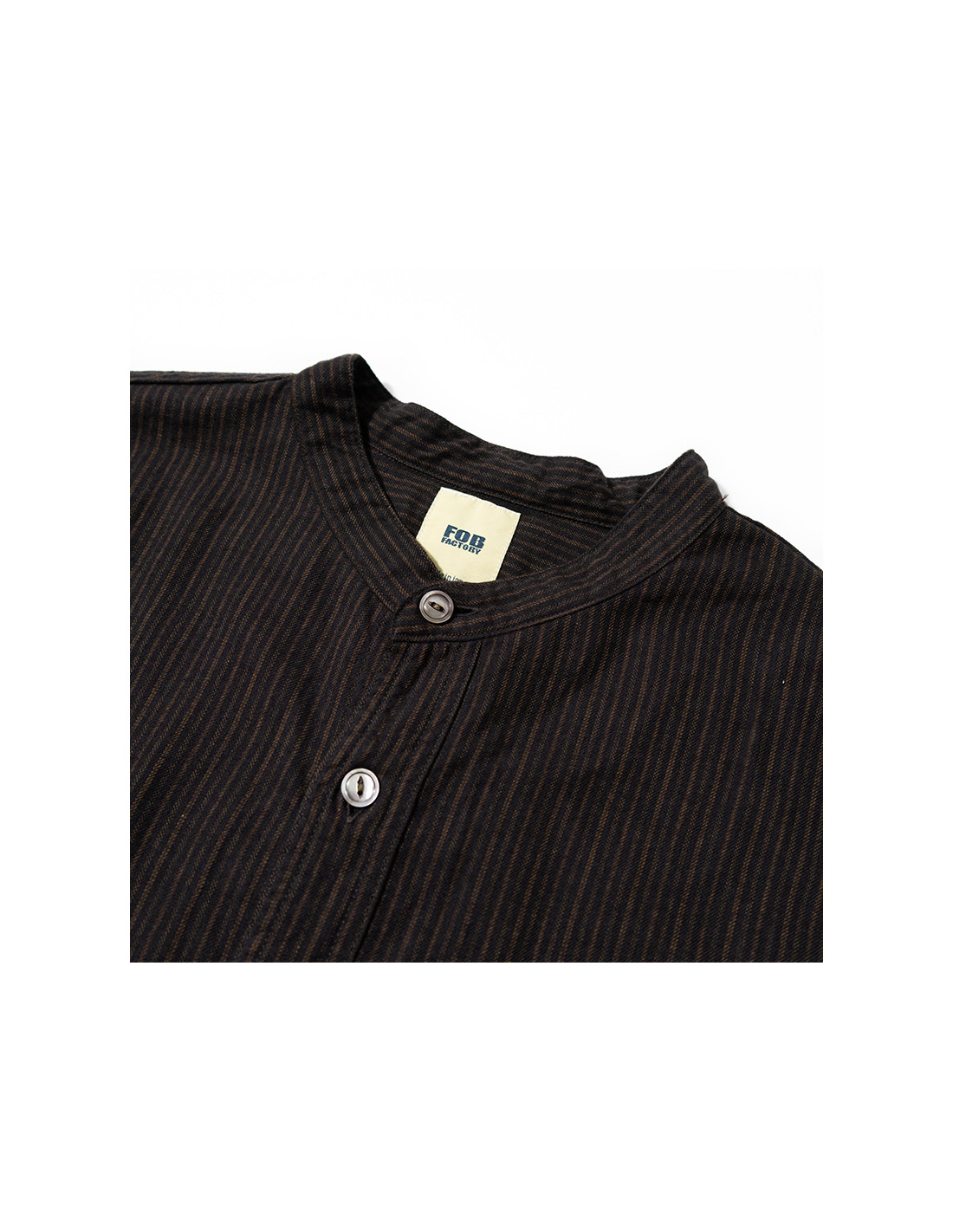 Inspired by FOB FACTORY's classic mandarin collar shirt, it offers a unique, relaxed look while pairing perfectly with sophisticated casual outfits.