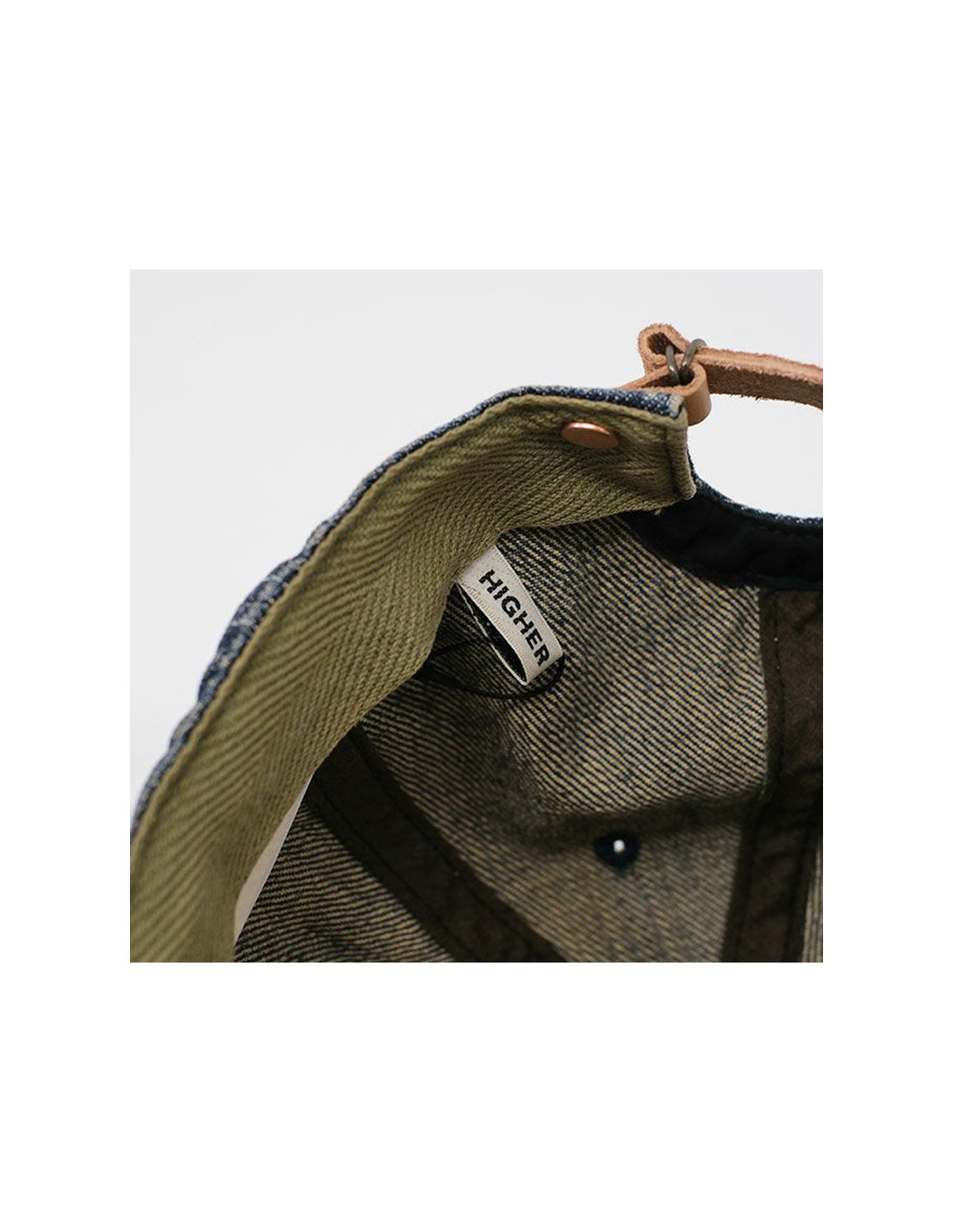 The HIGHER HT18006 cap is made from 100% cotton selvedge denim, manufactured in Japan and designed for durability. With a clean silhouette and a slightly shorter brim than a classic cap, it offers a crisp and versatile look for everyday wear, season after season.