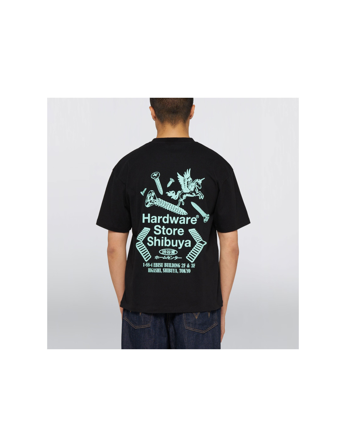 The Hardware Store Shibuya T-shirt features an oversized fit and a ribbed collar. Made from soft jersey, it's adorned with prints on the chest and back.