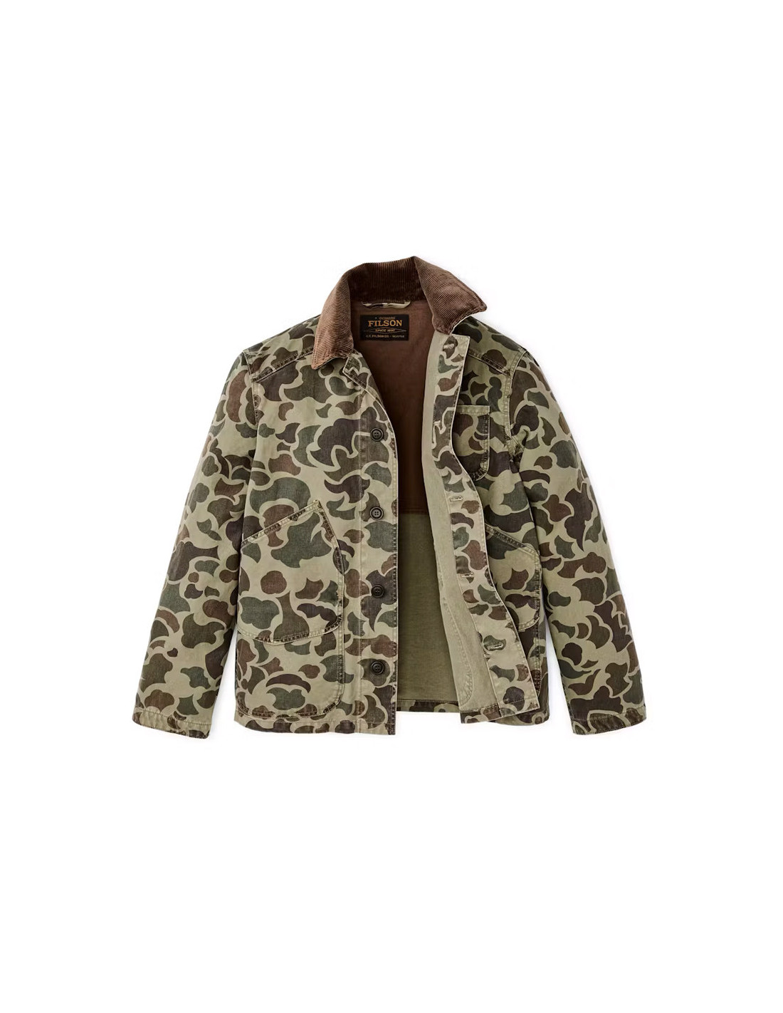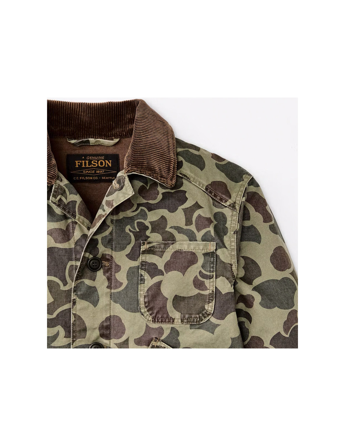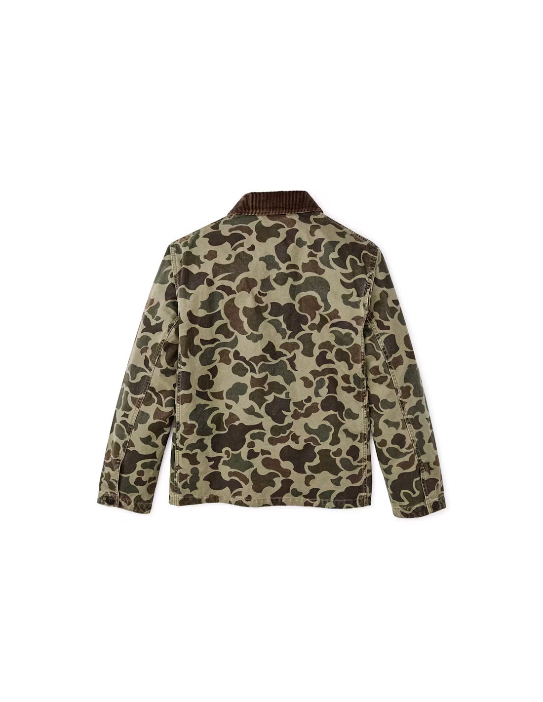 Inspired by our vintage field coats, this piece of equipment is designed to protect athletes from brush and harsh weather in the field. Their versatility makes them a must-have in all areas, just like our canvas field jacket. Made from tightly woven 297g canvas, it protects against wind, brambles, and wood chips. Its corduroy collar provides optimal comfort in cold weather. Its sturdy buttons are resistant to wood chips. Its layered pockets are inspired by the waterfowl hunting jacket from our archives.
