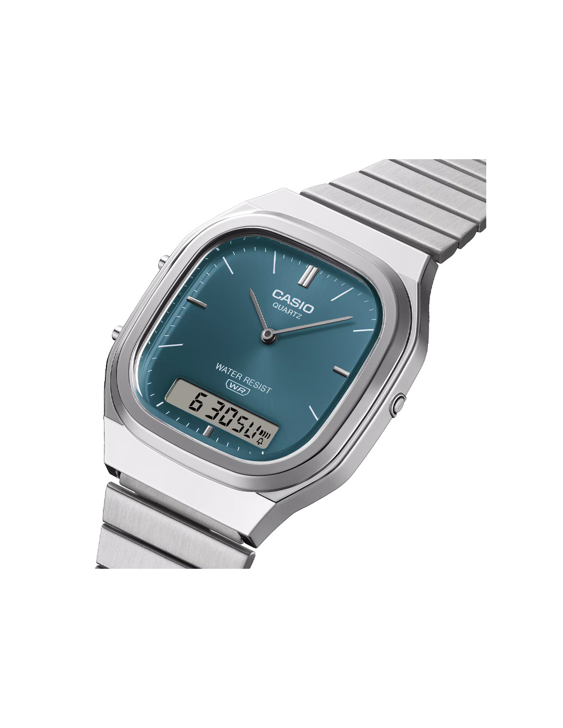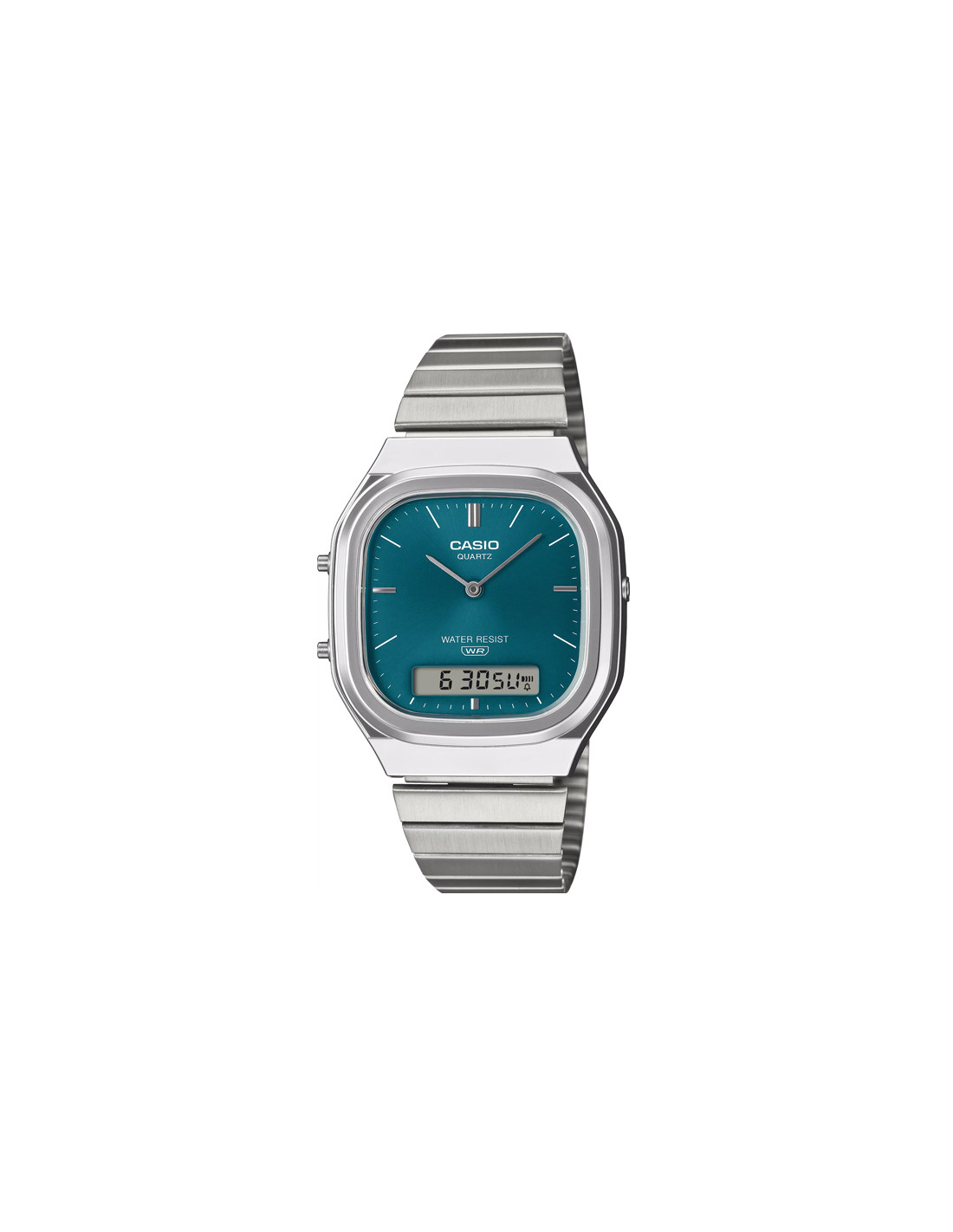 Avec son double affichage analogique et numérique, la AQ-240 possède un design rétro mais moderne. Son cadran légèrement rectangulaire compensé par un boîtier légèrement arrondi et des courbes métalliques, respire la sophistication.