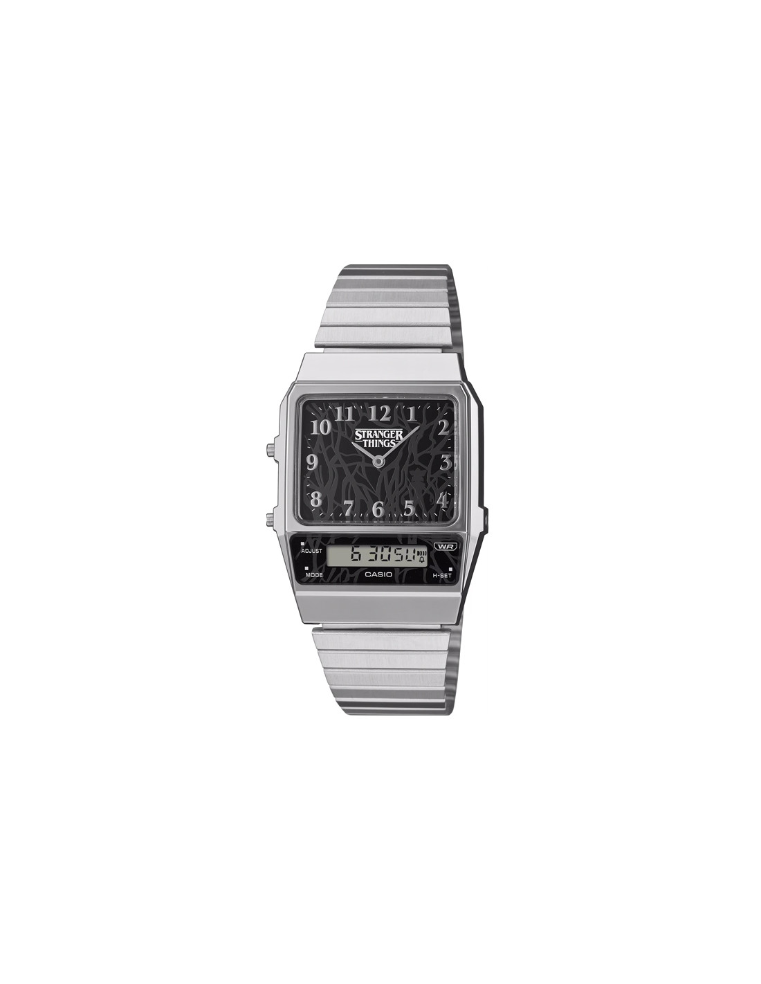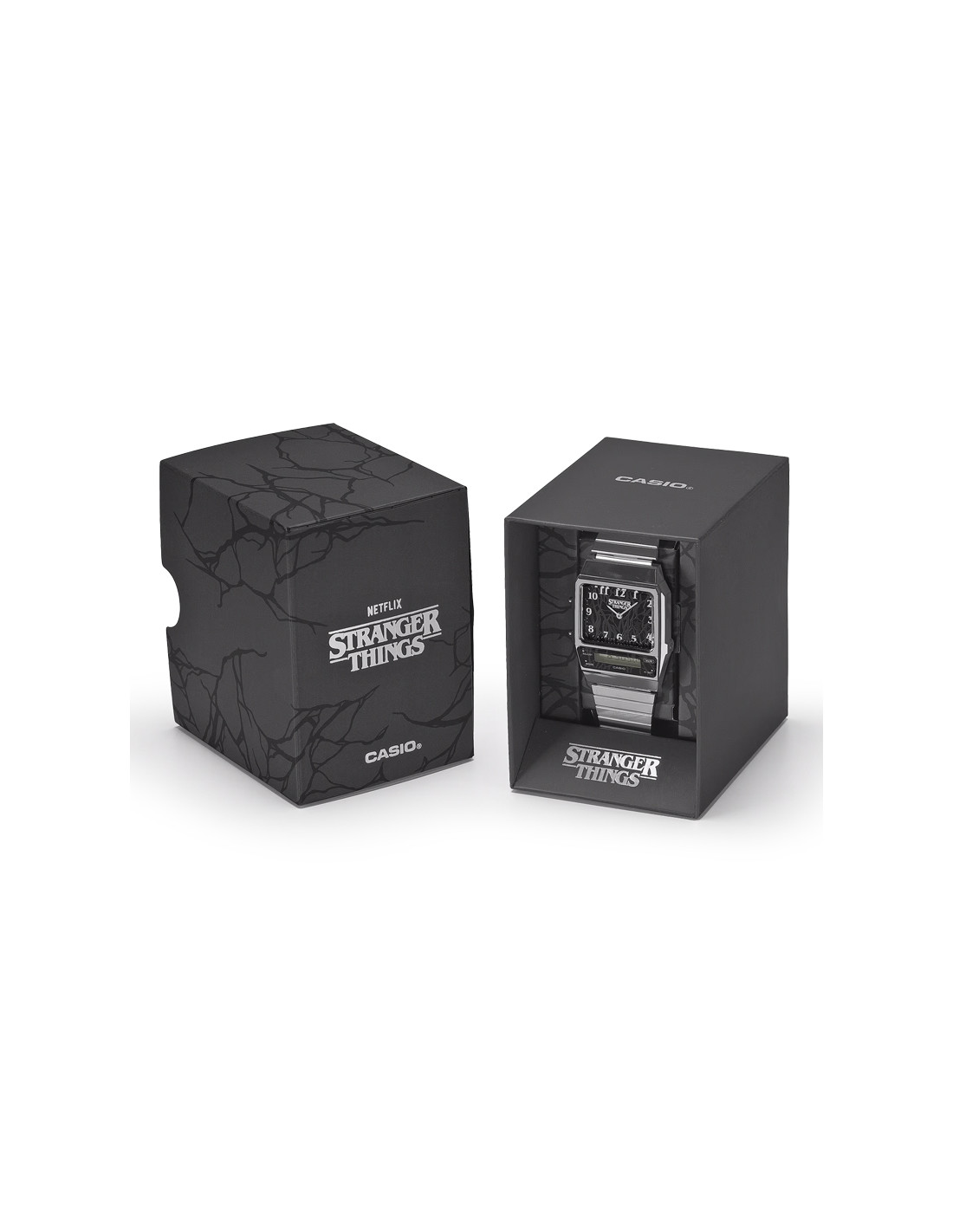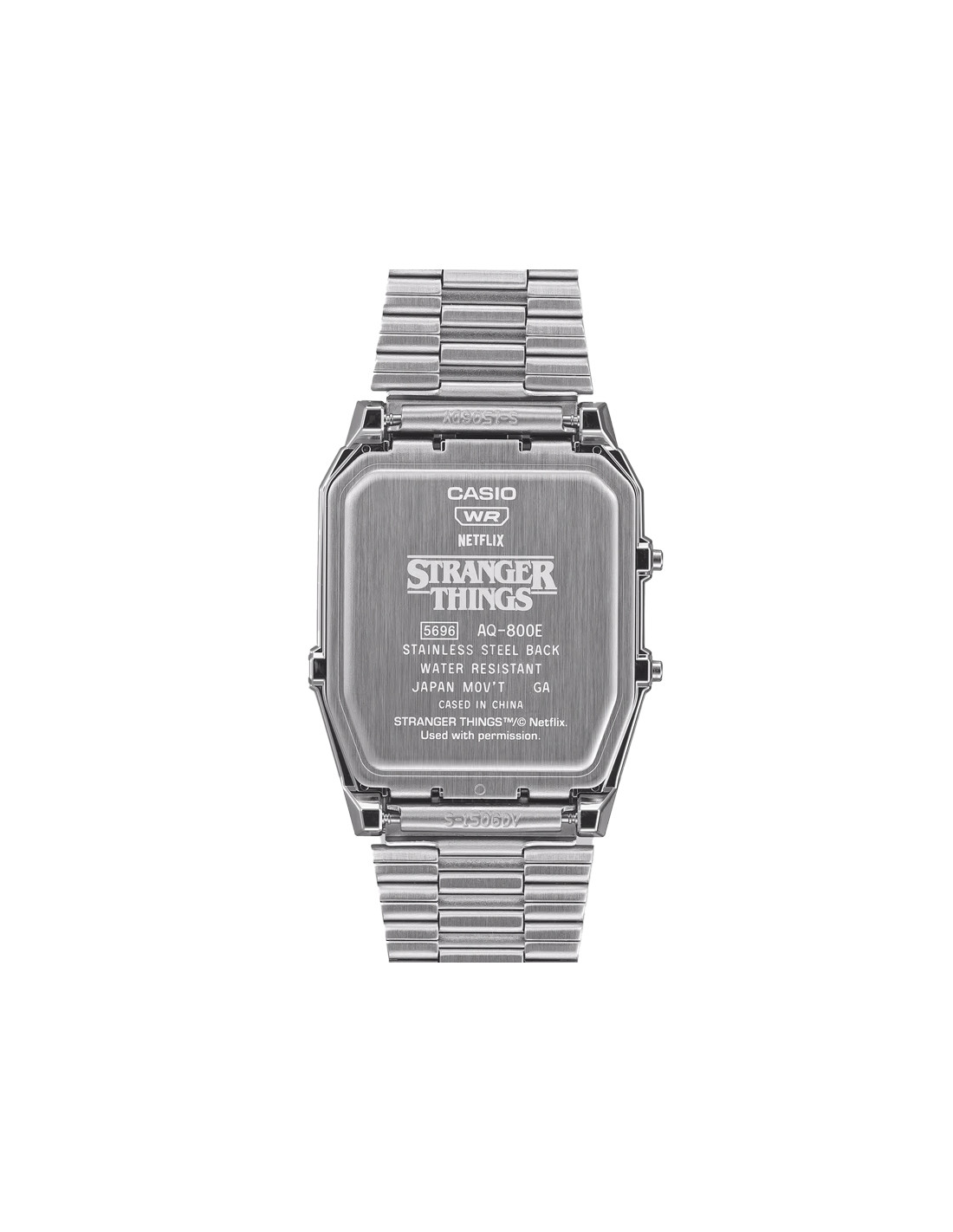 Cette montre est basée sur le modèle AQ-800. Inspirée par les deux mondes de l'histoire – la réalité que nous connaissons et le mystérieux Monde à l'envers – son design intègre des éléments clés de la série dans les moindres détails.