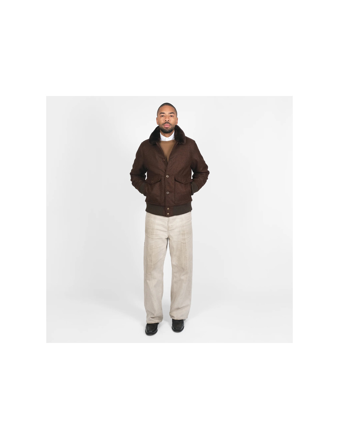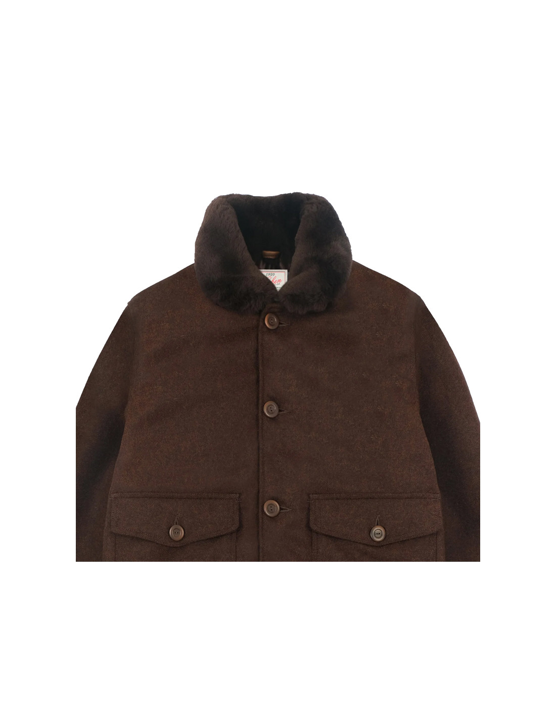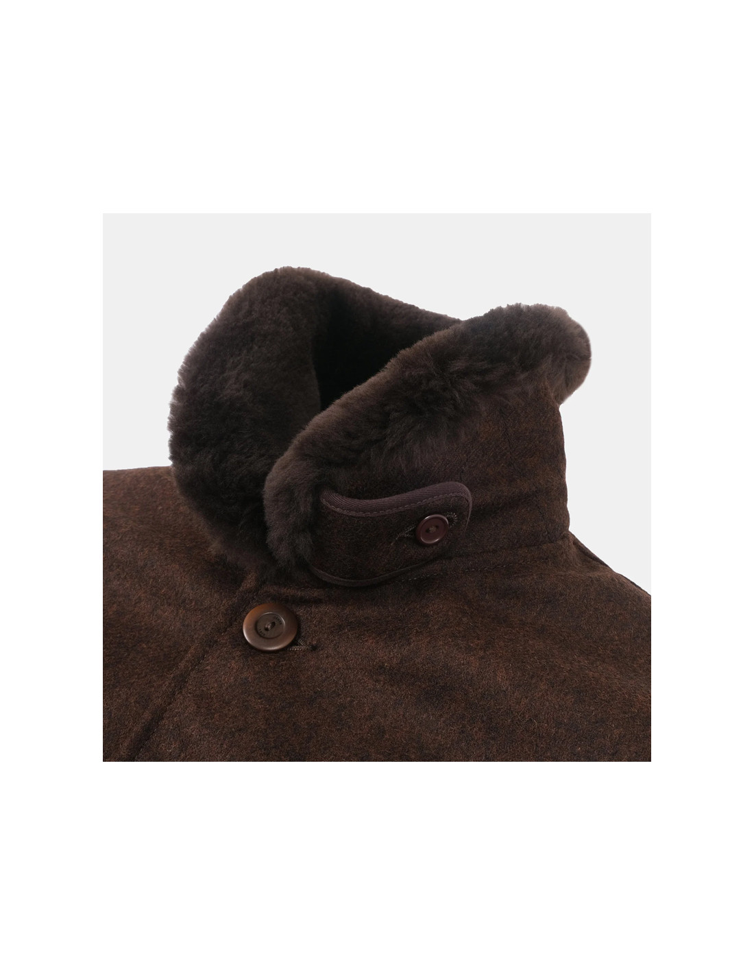 Ce manteau en laine élégant et raffiné s'inspire des styles classiques et intemporels d'antan. Il présente des poches plaquées à double entrée, une fermeture boutonnée en corozo, une doublure en satin marron élégante et un col mouton tendance. Nos finitions en maille 100 % laine aux poignets et à la taille en font une pièce d'exception.