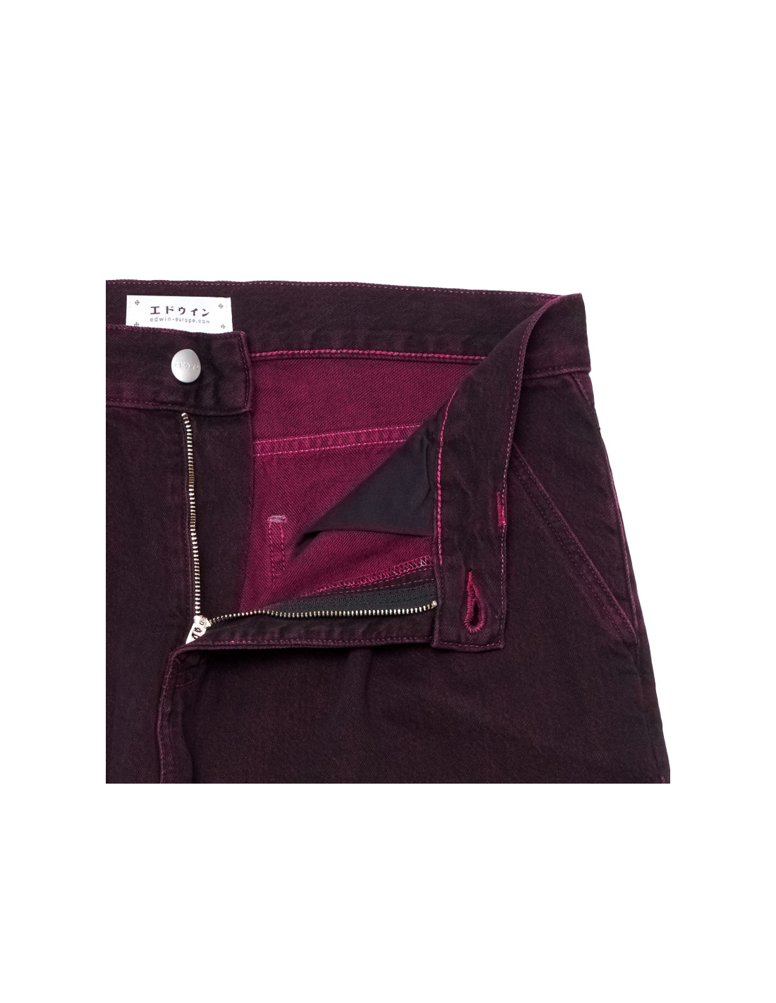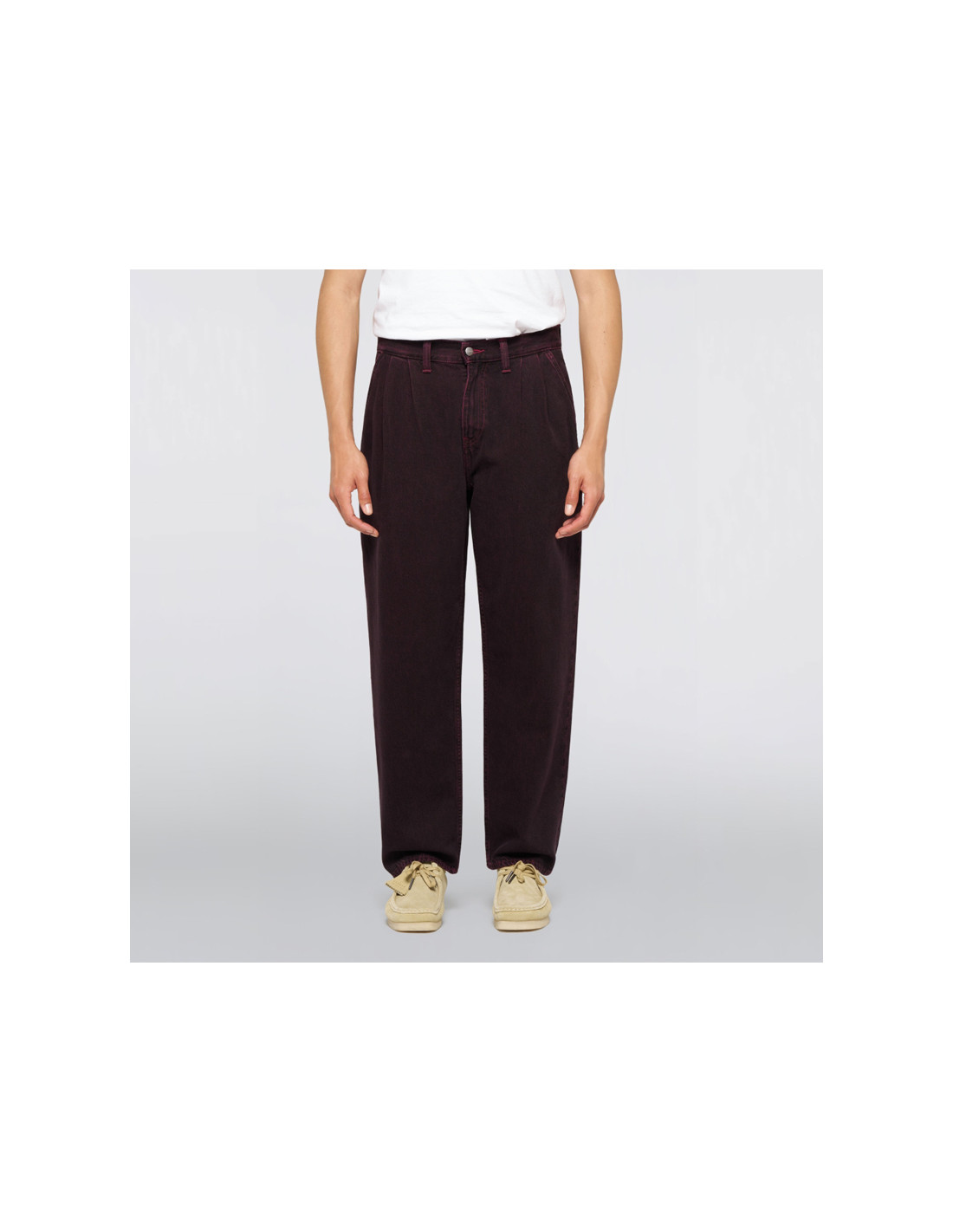 Avec ses doubles plis sur le devant et sa coupe taille haute confortable, le pantalon Bamba revisite avec modernité la coupe classique. Ce modèle ample est confectionné dans un denim de coton robuste, teint en rouge prune, pour une teinte bordeaux profonde et riche. Sa jambe est légèrement fuselée à partir du genou.