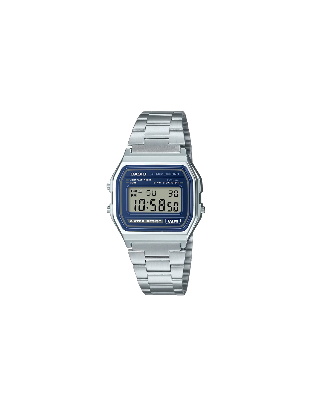 La Casio A158WEA-2 reprend l’un des designs digitaux les plus reconnaissables de Casio et lui ajoute un détail qui change tout : un cadran bleu profond qui apporte une note graphique à ce classique des années 80.
