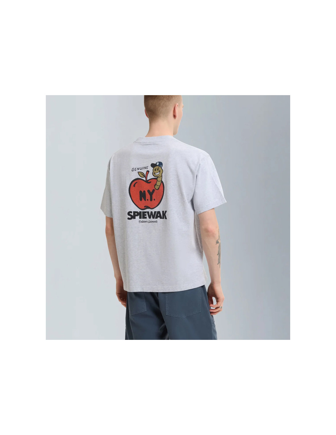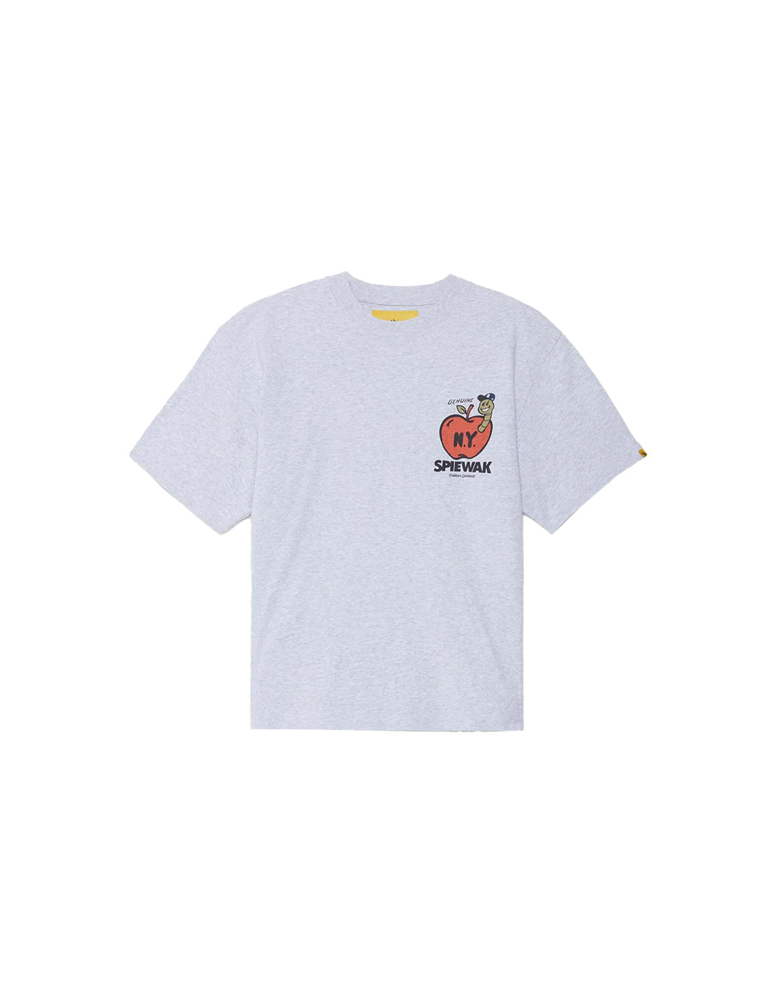 Un motif iconique de la « Grosse Pomme » est imprimé en évidence sur la poitrine, rendant hommage à New York, berceau de SPIEWAK, et capturant le mélange unique de force, d'humour et d'énergie culturelle qui caractérise la ville. Les irrégularités naturelles de la maille ouverte complètent le motif à la fois ludique et audacieux, lui conférant une touche urbaine brute.