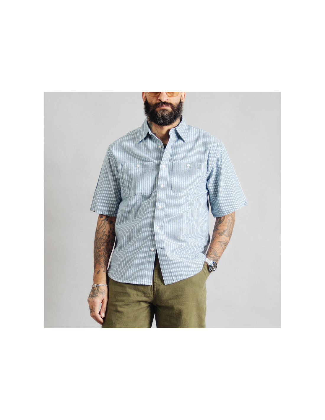 La chemise de travail à manches courtes est une pièce remarquable. Directement issue de nos archives de vêtements de travail américains et revisitée avec une touche contemporaine, elle présente une coupe légèrement carrée et décontractée, confectionnée en toile de coton 100 % résistante. Une poche poitrine boutonnée au charme rétro ajoute une note d'authenticité. Portez-la par-dessus un pull gaufré ou un sweat-shirt à manches longues, ou seule comme une chemise classique à manches courtes lorsque les températures grimpent. Intemporelle, polyvalente et conçue pour toutes les saisons.