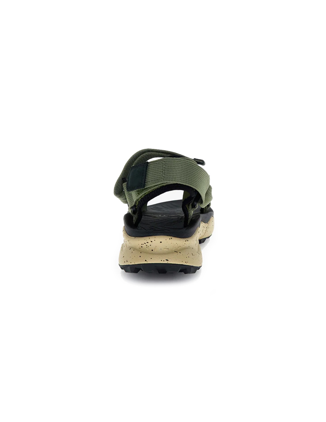 Sandale technique semi-ouverte alliant tissu technique coloré et daim pour un équilibre parfait entre performance et texture. La tige en micro-mesh assure une bonne respirabilité, tandis que les brides en nylon technique s'ajustent au niveau des orteils, du cou-de-pied et du talon grâce à des fermetures Velcro sécurisées. La bride au talon et le logo apportent la touche finale, pour un design épuré et distinctif.