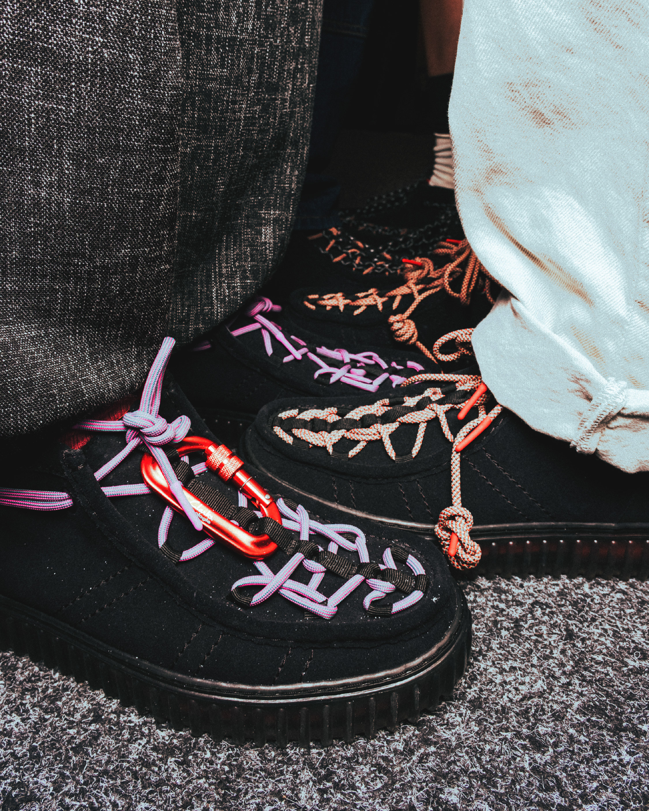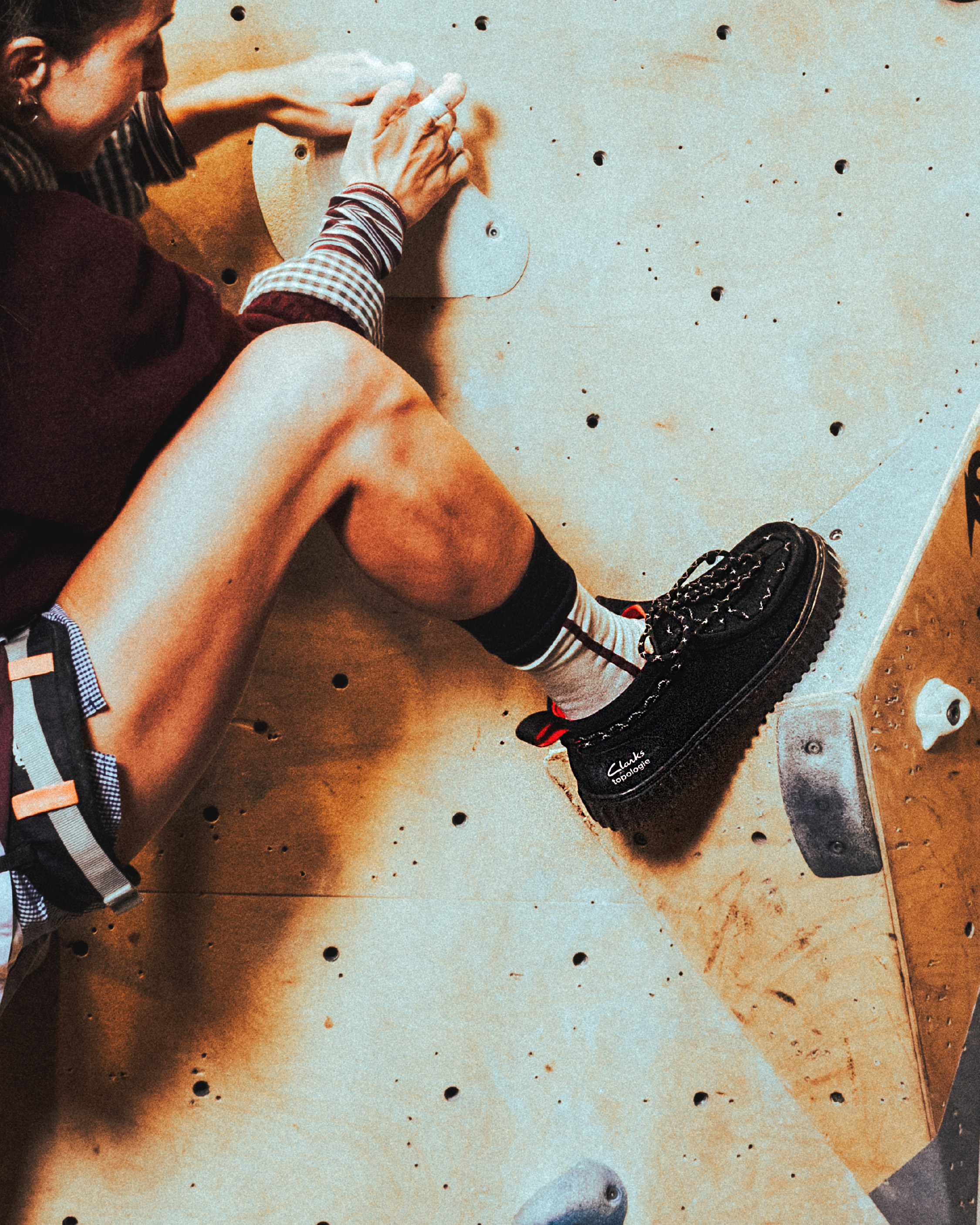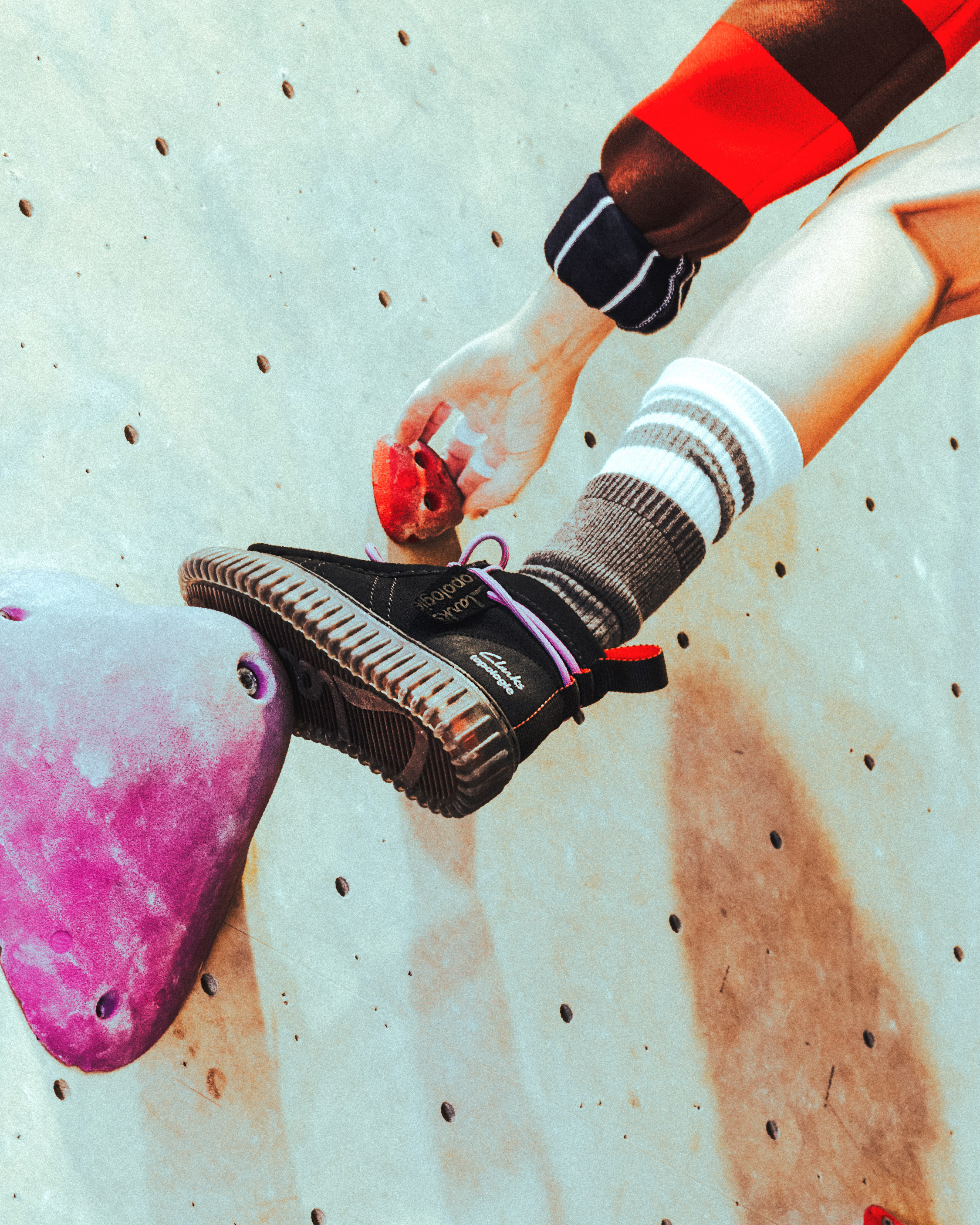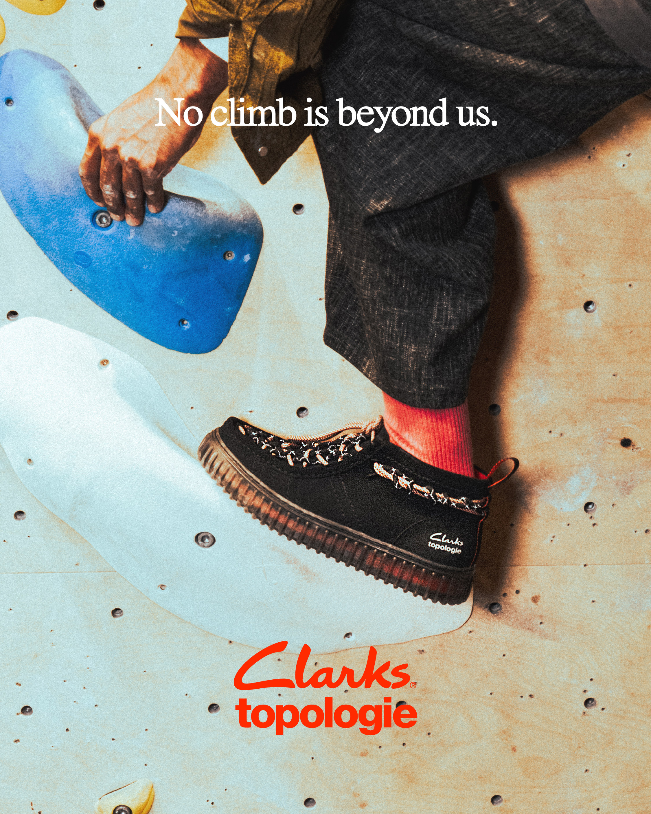 Topologie et Clarks s'associent pour réinventer la Torhill Hi, un modèle emblématique de la marque britannique. Cette collaboration allie le savoir-faire artisanal de Clarks à l’esthétique inspirée de l’escalade propre à Topologie, créant un pont entre le monde fonctionnel outdoor et celui de la mode urbaine contemporaine.